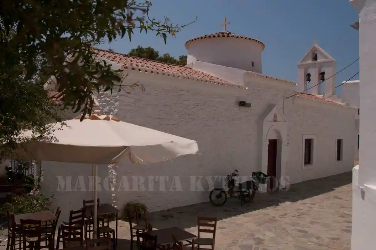 Η Χώρα, ή Μεσαριά, πρωτεύουσα της Κύθνου, είναι κτισμένη αμφιθεατρικά στην πλαγιά ενός λόφου. Απέχει 8 χλμ. από τον Μέριχα, το λιμάνι του νησιού και 11 περίπου χλμ απο τα δωματιά μας στην Κανάλα. Η Xώρα Kύθνου, με το έντονο κυκλαδίτικο χρώμα και την αυθεντική νησιώτικη ατμόσφαιρα γοητεύουν κάθε επισκέπτη. Mικρές πλατείες και γραφικά πλακόστρωτα δρομάκια με παραδοσιακά εστιατόρια, καφέ μπαρ, ζαχαροπλαστεία και εμπορικά καταστήματα, κάτασπρα σπίτια με χρωματιστές πόρτες και παράθυρα, σκαλιά, καμάρες και στεγάδια, εκκλησίες και ανεμόμυλοι συνθέτουν ένα θαυμάσιο οικιστικό σύνολο.Αξίζει να επισκεφθείτε τις αξιόλογες εκκλησίες της Χώρας που διακρίνονται για την ιδιαίτερη αρχιτεκτονική τους και τον πλούσιο εσωτερικό τους διάκοσμο. Ξεχωρίζουν ο ναός του Αγίου Σάββα που χρονολογείται από το 1613 και έχει το οικόσημο του Α. Γοζαδίνου, ο ναός του Σωτήρα με το τέμπλο του 17ου αιώνα και η εκκλησία της Αγίας Τριάδας που είναι η παλαιότερη του νησιού. Επίσης, μην παραλείψετε να επισκεφθείτε τη μονή της Παναγίας του Νίκους, που είναι κτισμένη σε μια καταπληκτική τοποθεσία. Στο υπόγειο της μονής λειτουργούσε κρυφό σχολείο, ενώ θα δείτε και έναν πανέμορφο επιτάφιο της Παναγίας.Στη βορειοανατολική πλευρά της Χώρας θα δείτε το Αιολικό Πάρκο, στο οποίο παράγεται ηλεκτρική ενέργεια από τη δύναμη του ανέμου. Είναι ο πρώτος αιολικός σταθμός που λειτούργησε στην Ελλάδα.